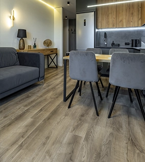 Ideal para quem busca durabilidade e conforto acústico. O piso vinílico é resistente, silencioso, agradável ao toque e perfeito para ambientes com alto tráfego.